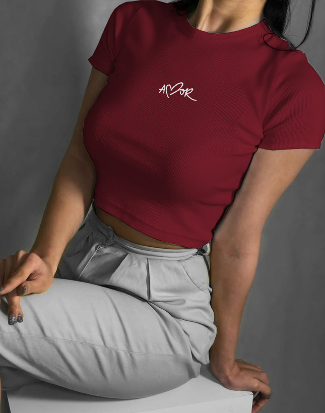 تیشرت کراپ کبریتی کشبافت 100 درصد پنبه با کشسانی بالا
