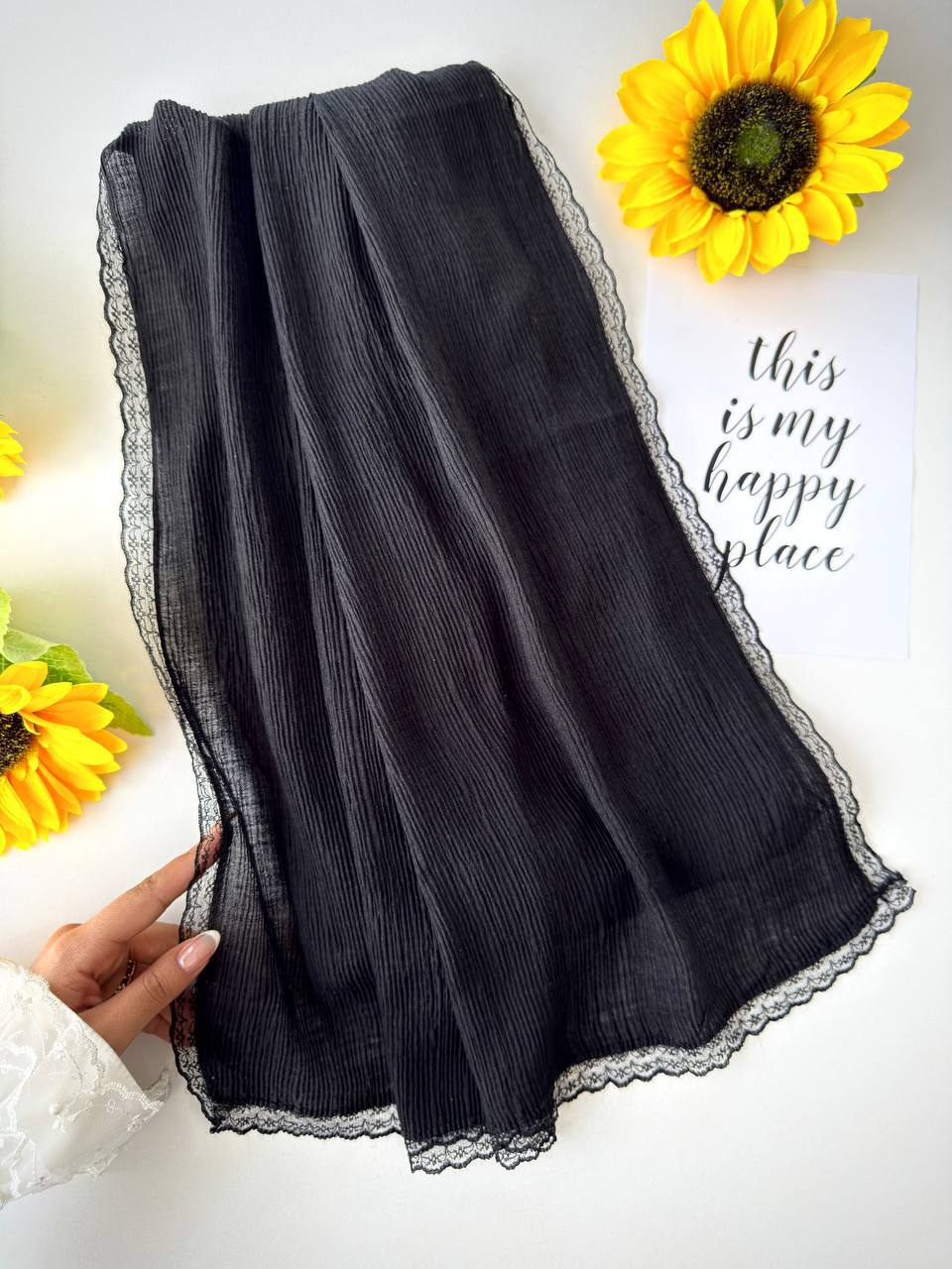 شال نخی برشکا لبه توری بدون لیزی