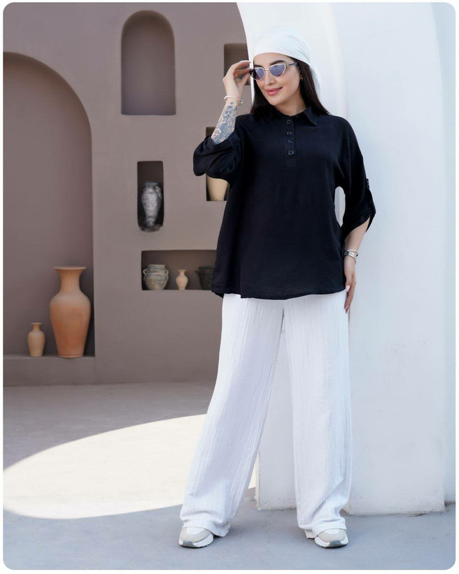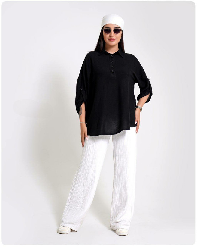 یه شومیز سبک و خوشفرم با جنس لنینوال ترک که هم خنکه، هم خیلی قشنگ روی تن میشینه.