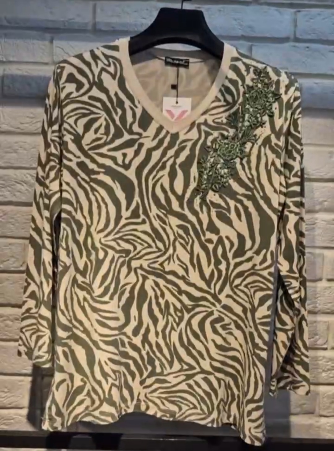 بلوز نخ ویسکوز اصل ترک آستین بلند سرسینه گیپور دوزی همراه با نگین دمپا چاک دار