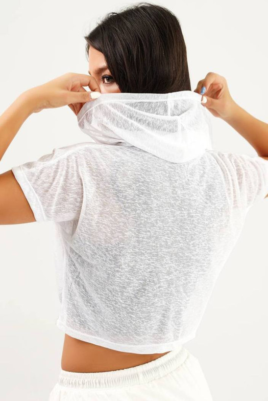 کراپ کیمونو کلاهدار زیپی